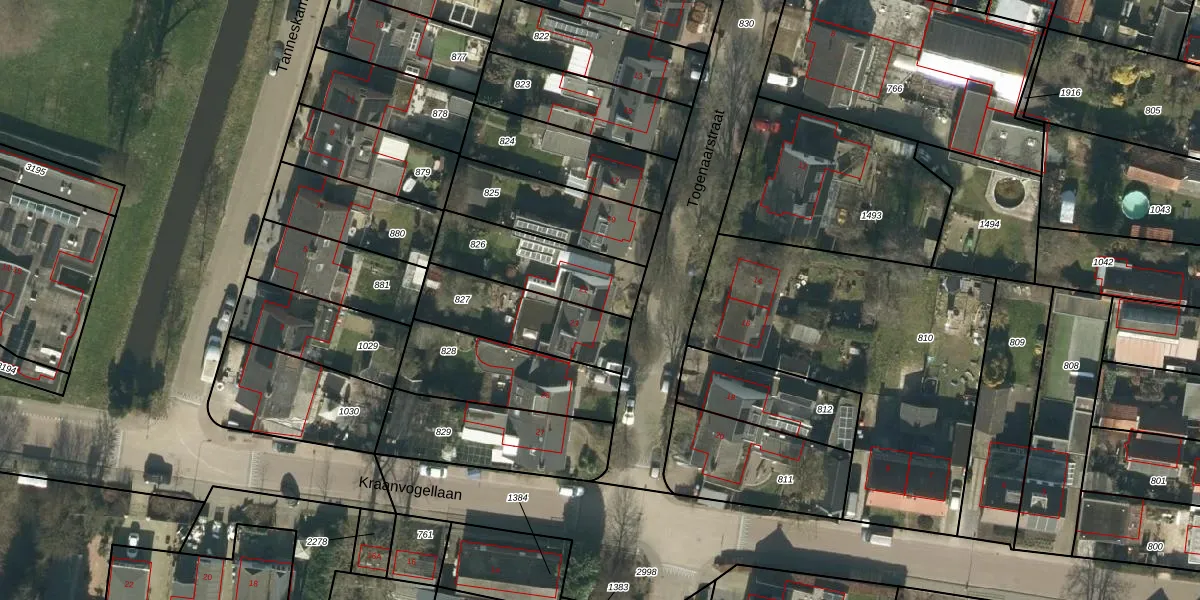 Het perceel waarop Togenaarstraat 21 staat heeft een oppervlakte van 323 m². Dit is een groot perceel. De perceeloppervlakte wordt geregistreerd door het Kadaster. Gedetailleerde informatie over de maten van dit perceel kunt u vinden in het rapport Kadastrale kaart met maatvoering van Togenaarstraat 21.