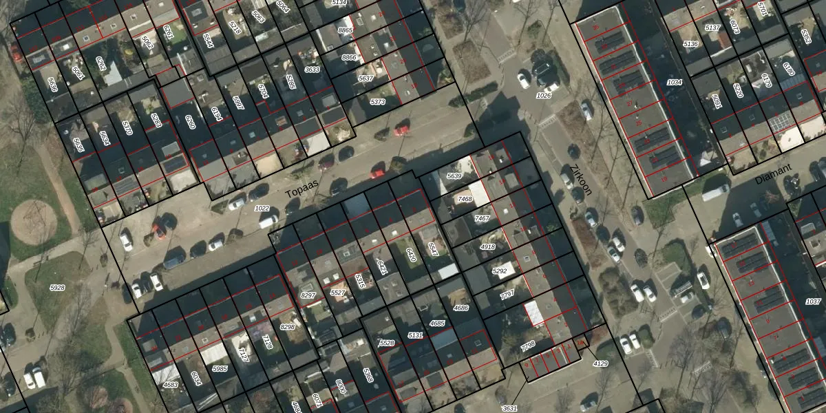Het perceel waarop Topaas 2 staat heeft een oppervlakte van 199 m². Dit is een middelgroot perceel. De perceeloppervlakte wordt geregistreerd door het Kadaster. Gedetailleerde informatie over de maten van dit perceel kunt u vinden in het rapport Kadastrale kaart met maatvoering van Topaas 2.