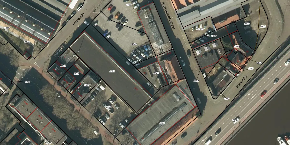 Het perceel waarop Tramkade 15 staat heeft een oppervlakte van 560 m². Dit is een groot perceel. De perceeloppervlakte wordt geregistreerd door het Kadaster. Gedetailleerde informatie over de maten van dit perceel kunt u vinden in het rapport Kadastrale kaart met maatvoering van Tramkade 15.