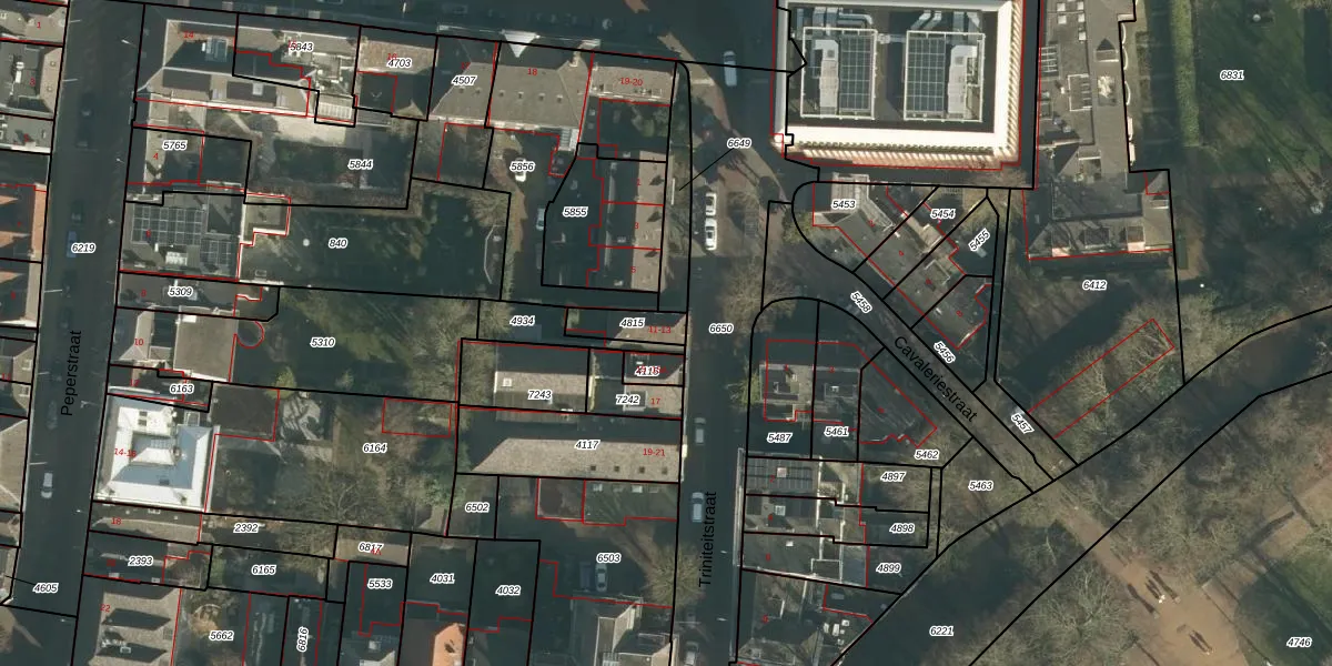 Triniteitstraat 11 is gelegen op kadastraal perceel HTG00H4815. Deze kadastrale aanduiding is uniek en wordt gebruikt door het Kadaster om eigendomsrechten en andere zakelijke rechten vast te leggen. Het perceel maakt onderdeel uit van de kadastrale gemeente 's-Hertogenbosch.