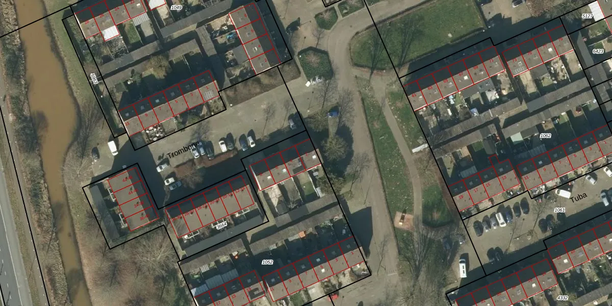 Het perceel waarop Trombone 2 staat heeft een oppervlakte van 2110 m². Dit is een zeer groot perceel. De perceeloppervlakte wordt geregistreerd door het Kadaster. Gedetailleerde informatie over de maten van dit perceel kunt u vinden in het rapport Kadastrale kaart met maatvoering van Trombone 2.