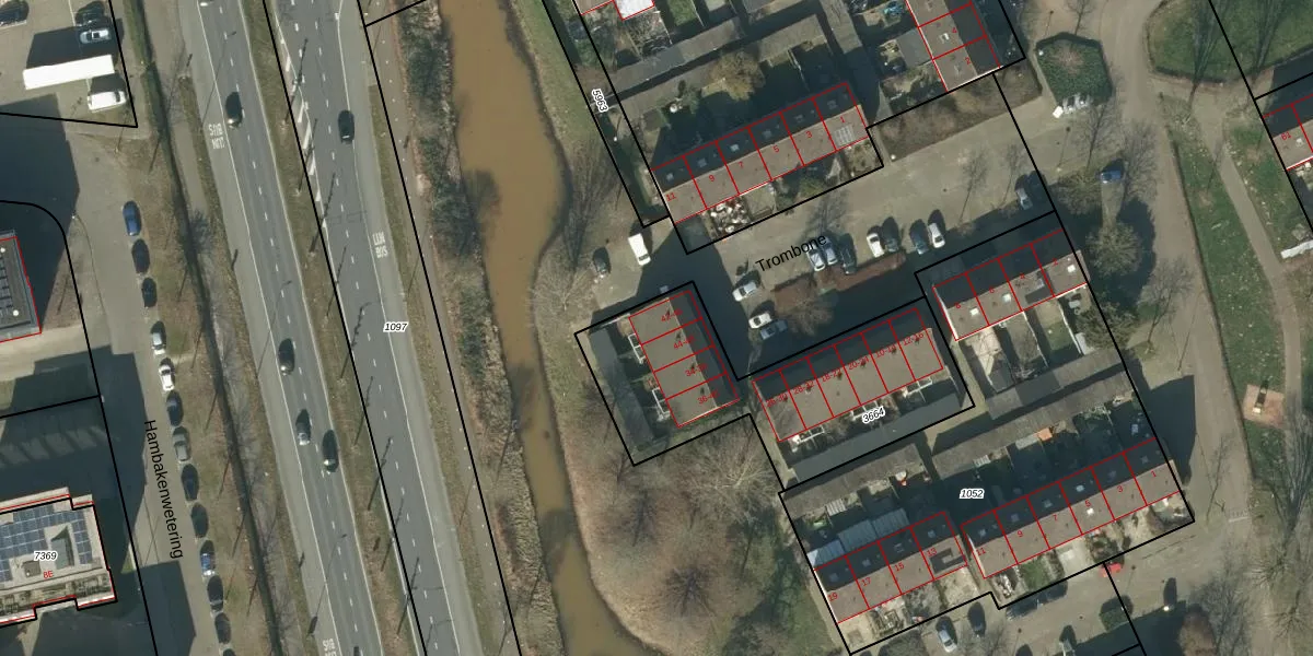 Het perceel waarop Trombone 42 staat heeft een oppervlakte van 1013 m². Dit is een zeer groot perceel. De perceeloppervlakte wordt geregistreerd door het Kadaster. Gedetailleerde informatie over de maten van dit perceel kunt u vinden in het rapport Kadastrale kaart met maatvoering van Trombone 42.
