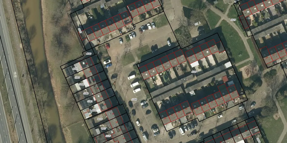 Het perceel waarop Trompet 41 staat heeft een oppervlakte van 3157 m². Dit is een zeer groot perceel. De perceeloppervlakte wordt geregistreerd door het Kadaster. Gedetailleerde informatie over de maten van dit perceel kunt u vinden in het rapport Kadastrale kaart met maatvoering van Trompet 41.