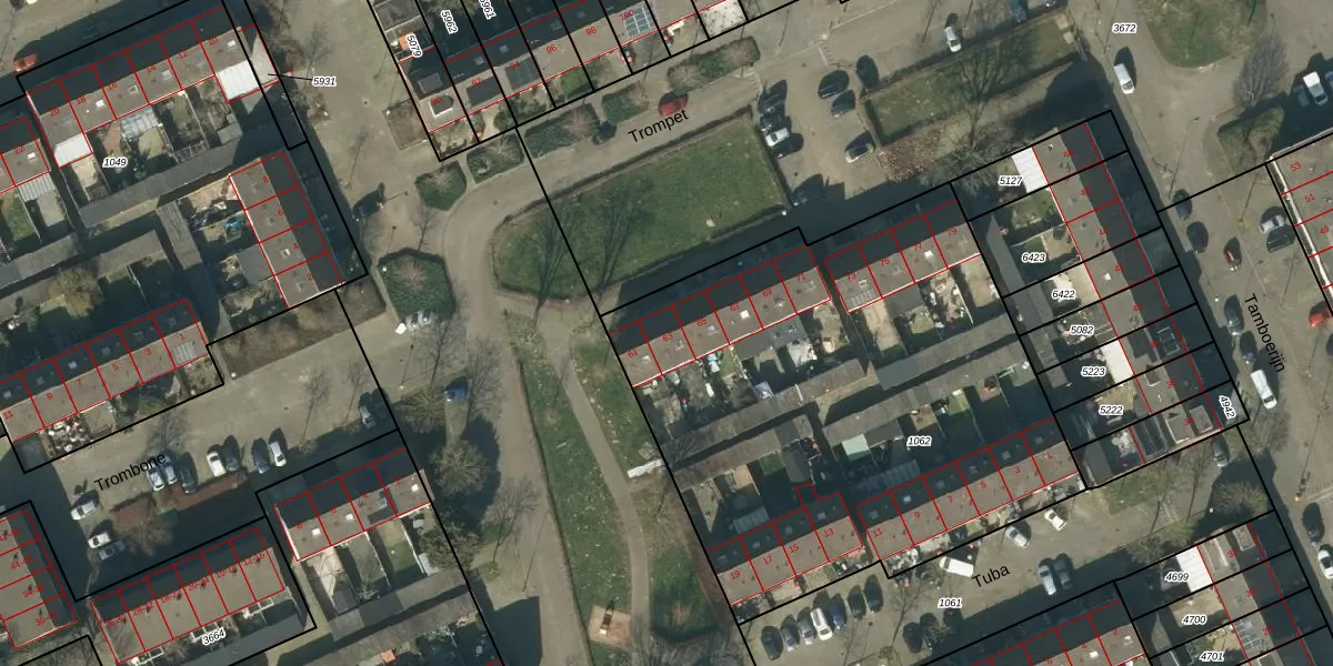 Het perceel waarop Trompet 63 staat heeft een oppervlakte van 2880 m². Dit is een zeer groot perceel. De perceeloppervlakte wordt geregistreerd door het Kadaster. Gedetailleerde informatie over de maten van dit perceel kunt u vinden in het rapport Kadastrale kaart met maatvoering van Trompet 63.