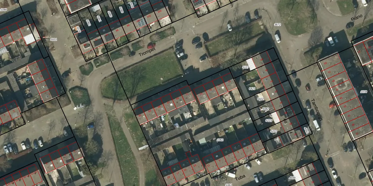 Het perceel waarop Trompet 71 staat heeft een oppervlakte van 2880 m². Dit is een zeer groot perceel. De perceeloppervlakte wordt geregistreerd door het Kadaster. Gedetailleerde informatie over de maten van dit perceel kunt u vinden in het rapport Kadastrale kaart met maatvoering van Trompet 71.