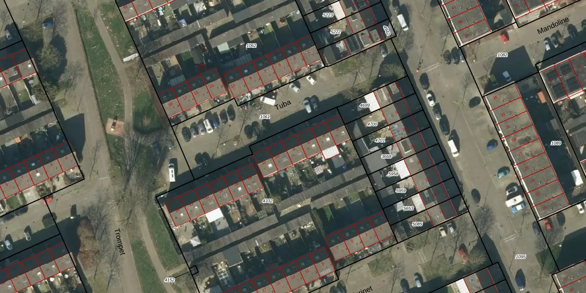 Het perceel waarop Tuba 8 staat heeft een oppervlakte van 3490 m². Dit is een zeer groot perceel. De perceeloppervlakte wordt geregistreerd door het Kadaster. Gedetailleerde informatie over de maten van dit perceel kunt u vinden in het rapport Kadastrale kaart met maatvoering van Tuba 8.