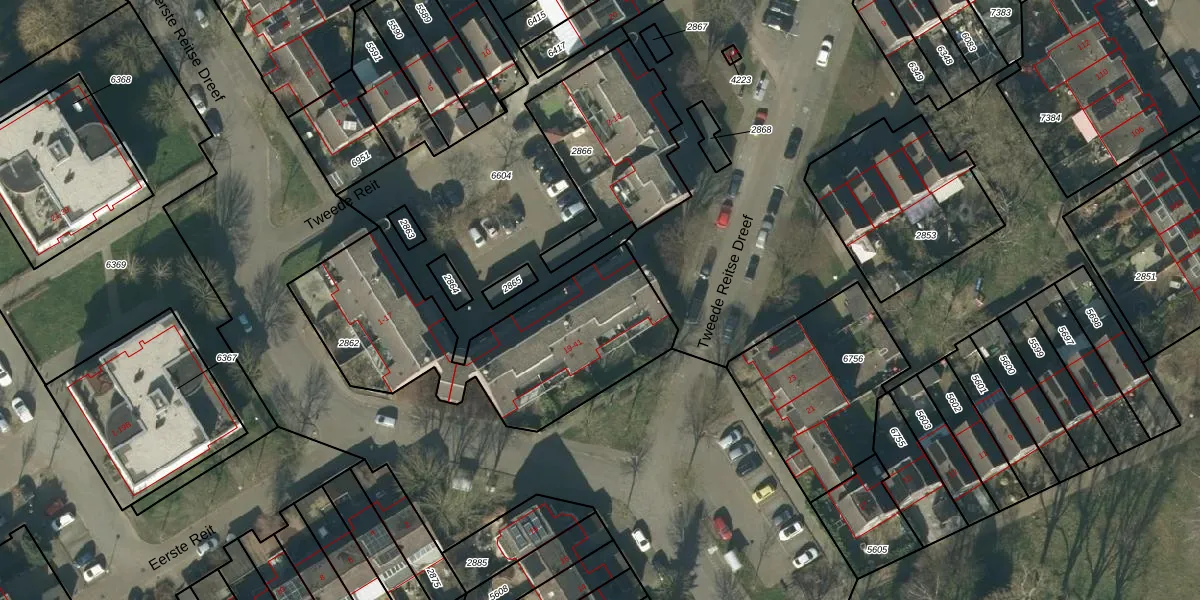 Het perceel waarop Tweede Reit 39 staat heeft een oppervlakte van 1090 m². Dit is een zeer groot perceel. De perceeloppervlakte wordt geregistreerd door het Kadaster. Gedetailleerde informatie over de maten van dit perceel kunt u vinden in het rapport Kadastrale kaart met maatvoering van Tweede Reit 39.