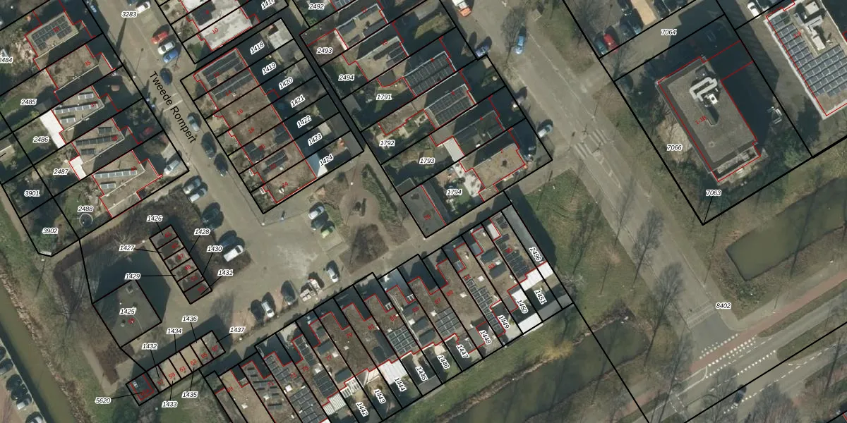 Het perceel waarop Tweede Rompert 26 staat heeft een oppervlakte van 404 m². Dit is een groot perceel. De perceeloppervlakte wordt geregistreerd door het Kadaster. Gedetailleerde informatie over de maten van dit perceel kunt u vinden in het rapport Kadastrale kaart met maatvoering van Tweede Rompert 26.