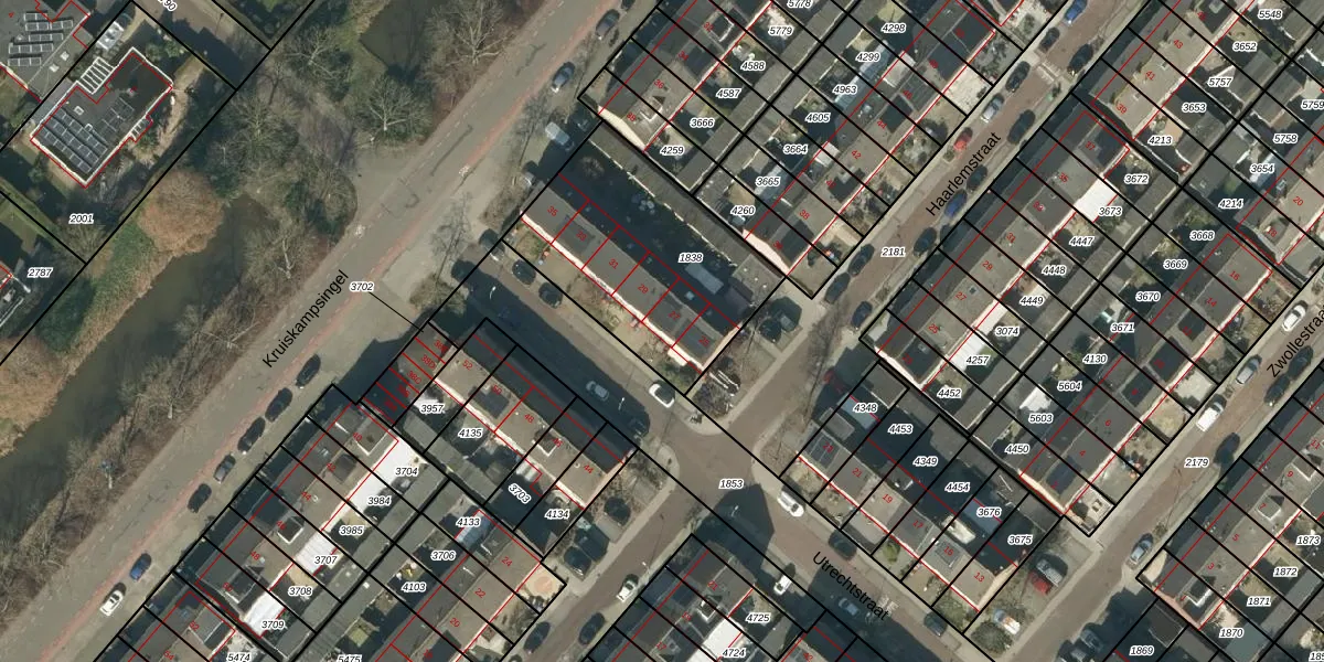 Het perceel waarop Utrechtstraat 27 staat heeft een oppervlakte van 863 m². Dit is een groot perceel. De perceeloppervlakte wordt geregistreerd door het Kadaster. Gedetailleerde informatie over de maten van dit perceel kunt u vinden in het rapport Kadastrale kaart met maatvoering van Utrechtstraat 27.