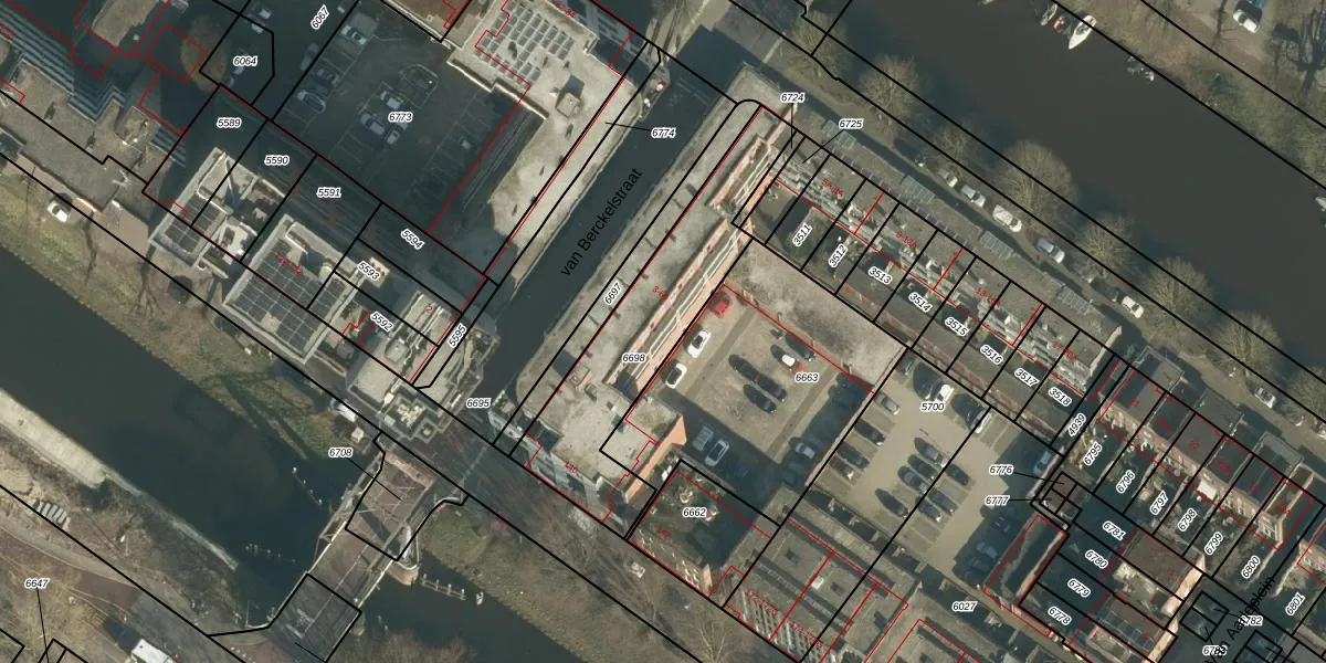Het perceel waarop van Berckelstraat 41 staat heeft een oppervlakte van 703 m². Dit is een groot perceel. De perceeloppervlakte wordt geregistreerd door het Kadaster. Gedetailleerde informatie over de maten van dit perceel kunt u vinden in het rapport Kadastrale kaart met maatvoering van van Berckelstraat 41.