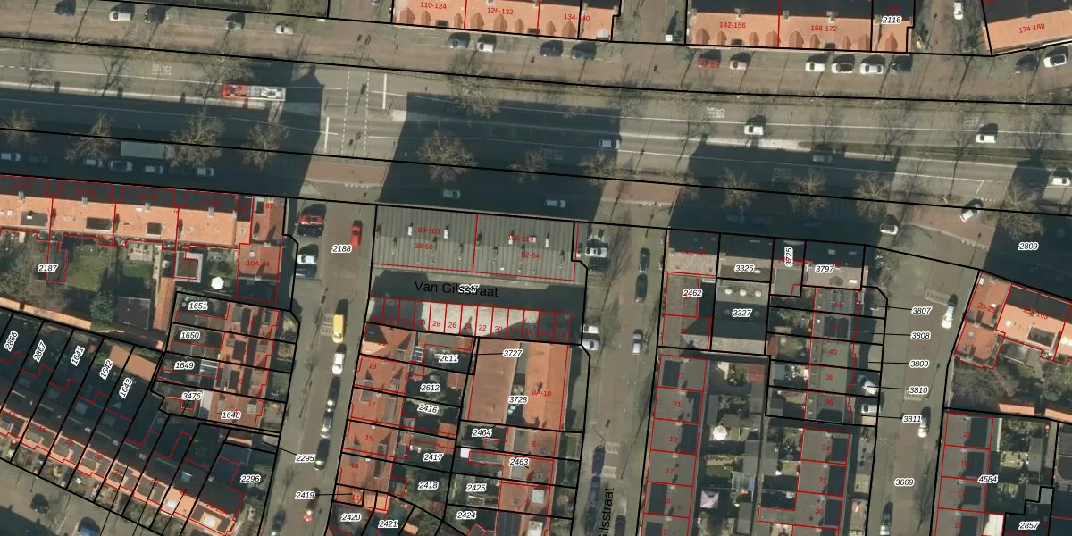 Het perceel waarop Van Gilsstraat 60 staat heeft een oppervlakte van 903 m². Dit is een groot perceel. De perceeloppervlakte wordt geregistreerd door het Kadaster. Gedetailleerde informatie over de maten van dit perceel kunt u vinden in het rapport Kadastrale kaart met maatvoering van Van Gilsstraat 60.