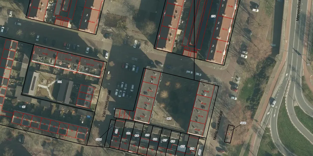 Het perceel waarop Van Heelustraat 39 staat heeft een oppervlakte van 1772 m². Dit is een zeer groot perceel. De perceeloppervlakte wordt geregistreerd door het Kadaster. Gedetailleerde informatie over de maten van dit perceel kunt u vinden in het rapport Kadastrale kaart met maatvoering van Van Heelustraat 39.