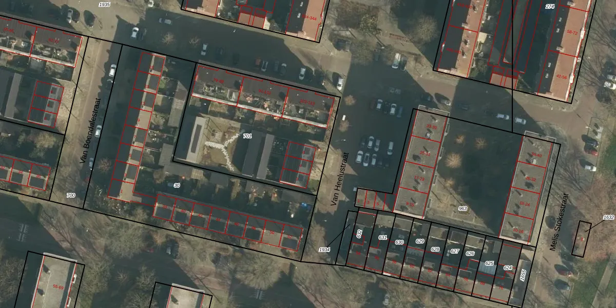 Het perceel waarop Van Heelustraat 6 staat heeft een oppervlakte van 1590 m². Dit is een zeer groot perceel. De perceeloppervlakte wordt geregistreerd door het Kadaster. Gedetailleerde informatie over de maten van dit perceel kunt u vinden in het rapport Kadastrale kaart met maatvoering van Van Heelustraat 6.