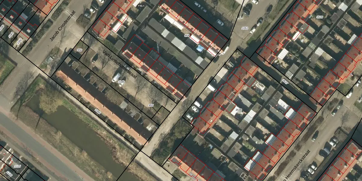 Het perceel waarop Van Linschotenstraat 1 staat heeft een oppervlakte van 2912 m². Dit is een zeer groot perceel. De perceeloppervlakte wordt geregistreerd door het Kadaster. Gedetailleerde informatie over de maten van dit perceel kunt u vinden in het rapport Kadastrale kaart met maatvoering van Van Linschotenstraat 1.
