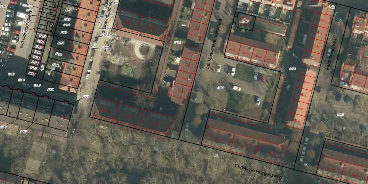 Het perceel waarop van Musschenbroekstraat 57 staat heeft een oppervlakte van 3806 m². Dit is een zeer groot perceel. De perceeloppervlakte wordt geregistreerd door het Kadaster. Gedetailleerde informatie over de maten van dit perceel kunt u vinden in het rapport Kadastrale kaart met maatvoering van van Musschenbroekstraat 57.