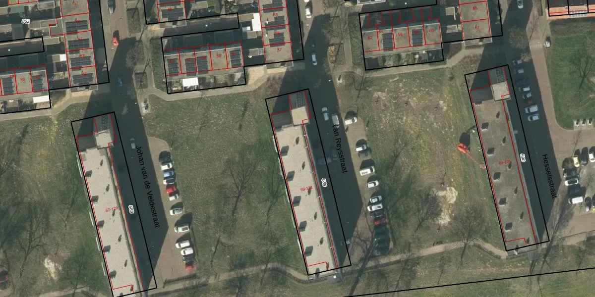 Het perceel waarop van Reysstraat 91 staat heeft een oppervlakte van 906 m². Dit is een groot perceel. De perceeloppervlakte wordt geregistreerd door het Kadaster. Gedetailleerde informatie over de maten van dit perceel kunt u vinden in het rapport Kadastrale kaart met maatvoering van van Reysstraat 91.