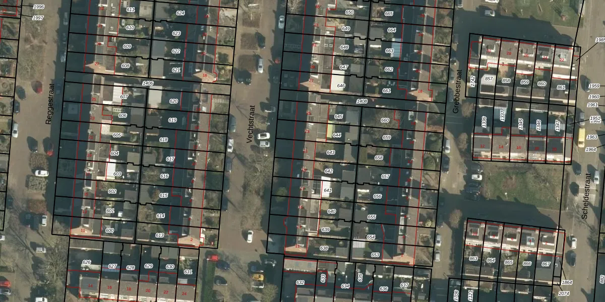 Gebruik de zoekbalk of klik op een perceel voor informatie over de adressen binnen dit perceel.