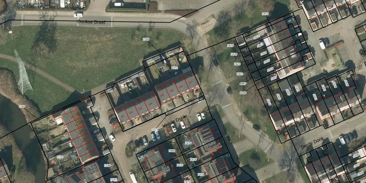 Vierde Donk 110 is gelegen op kadastraal perceel HTG00O7772. Deze kadastrale aanduiding is uniek en wordt gebruikt door het Kadaster om eigendomsrechten en andere zakelijke rechten vast te leggen. Het perceel maakt onderdeel uit van de kadastrale gemeente 's-Hertogenbosch.
