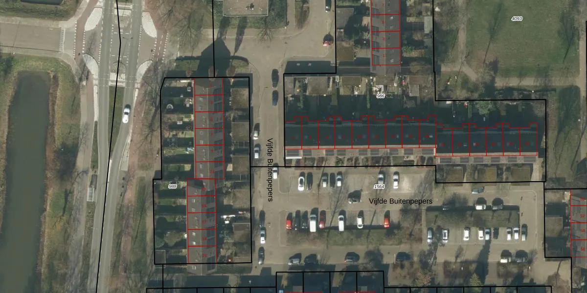 Het perceel waarop Vijfde Buitenpepers 2 staat heeft een oppervlakte van 5585 m². Dit is een zeer groot perceel. De perceeloppervlakte wordt geregistreerd door het Kadaster. Gedetailleerde informatie over de maten van dit perceel kunt u vinden in het rapport Kadastrale kaart met maatvoering van Vijfde Buitenpepers 2.