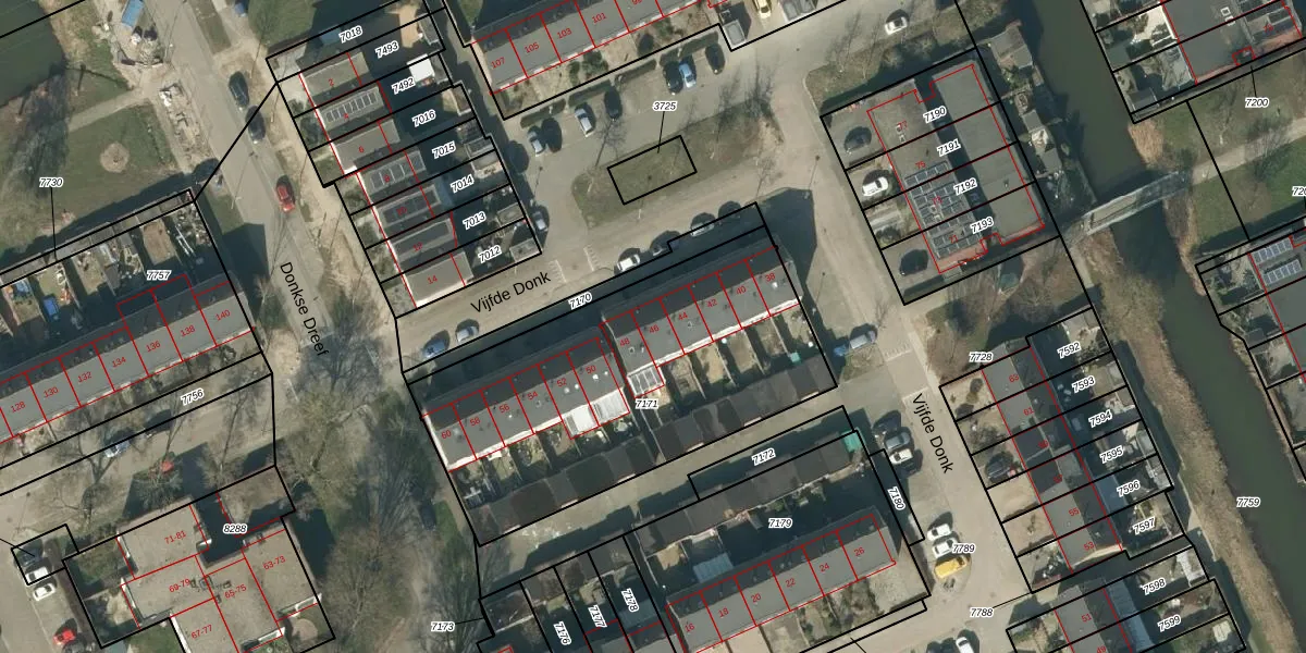 Vijfde Donk 46 is gelegen op kadastraal perceel HTG00O7171. Deze kadastrale aanduiding is uniek en wordt gebruikt door het Kadaster om eigendomsrechten en andere zakelijke rechten vast te leggen. Het perceel maakt onderdeel uit van de kadastrale gemeente 's-Hertogenbosch.