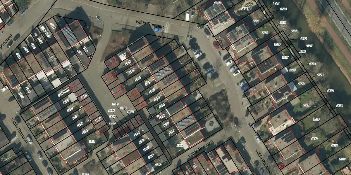 Het perceel waarop Vijfde Rompert 110 staat heeft een oppervlakte van 202 m². Dit is een middelgroot perceel. De perceeloppervlakte wordt geregistreerd door het Kadaster. Gedetailleerde informatie over de maten van dit perceel kunt u vinden in het rapport Kadastrale kaart met maatvoering van Vijfde Rompert 110.