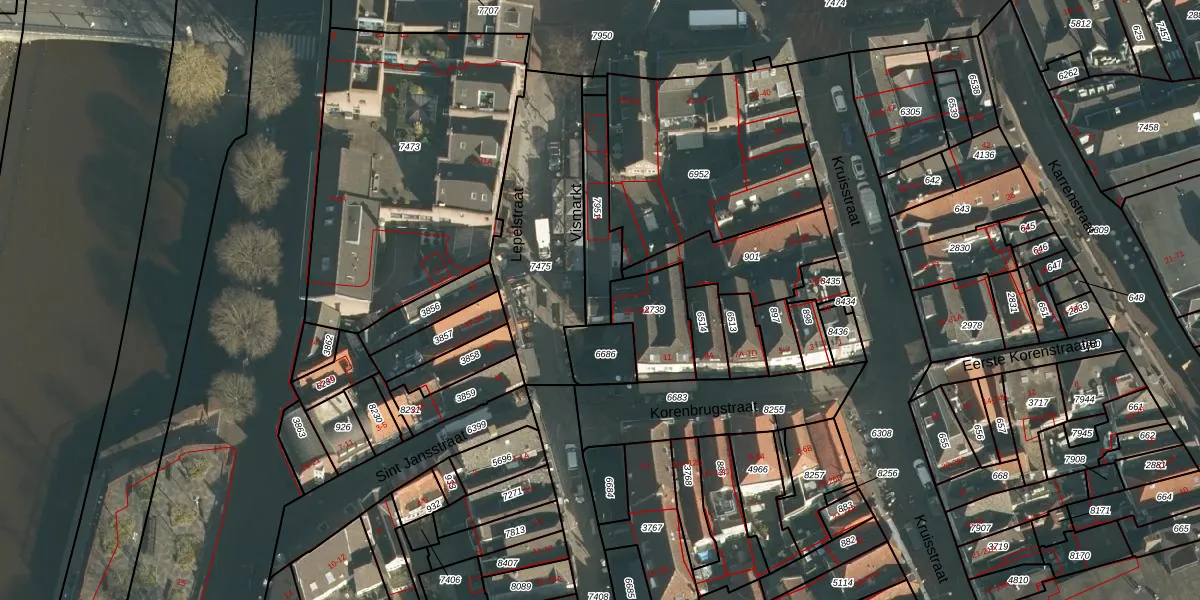 Het perceel waarop Vismarkt 18 staat heeft een oppervlakte van 181 m². Dit is een middelgroot perceel. De perceeloppervlakte wordt geregistreerd door het Kadaster. Gedetailleerde informatie over de maten van dit perceel kunt u vinden in het rapport Kadastrale kaart met maatvoering van Vismarkt 18.