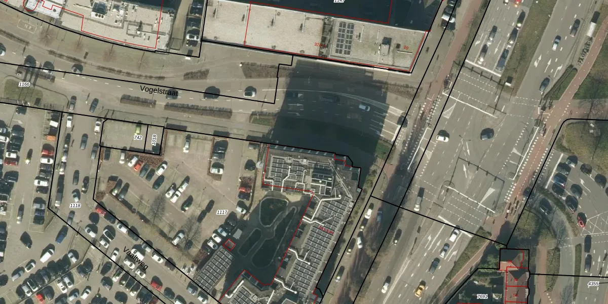 Het perceel waarop Vogelstraat 2-E staat heeft een oppervlakte van 3863 m². Dit is een zeer groot perceel. De perceeloppervlakte wordt geregistreerd door het Kadaster. Gedetailleerde informatie over de maten van dit perceel kunt u vinden in het rapport Kadastrale kaart met maatvoering van Vogelstraat 2-E.