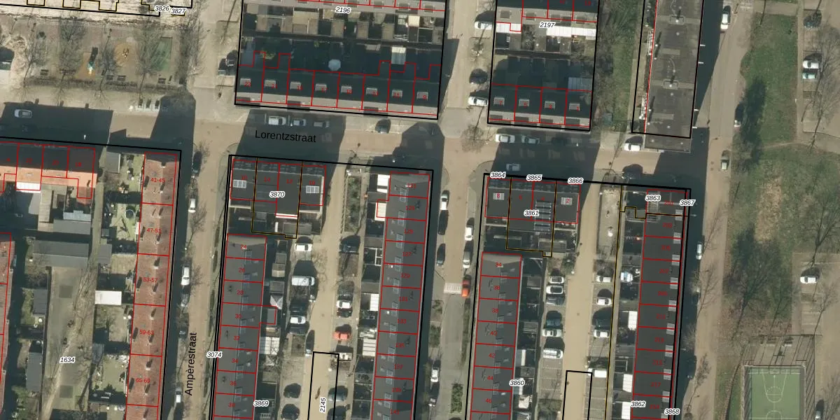 Het perceel waarop Voltastraat 123 staat heeft een oppervlakte van 3997 m². Dit is een zeer groot perceel. De perceeloppervlakte wordt geregistreerd door het Kadaster. Gedetailleerde informatie over de maten van dit perceel kunt u vinden in het rapport Kadastrale kaart met maatvoering van Voltastraat 123.