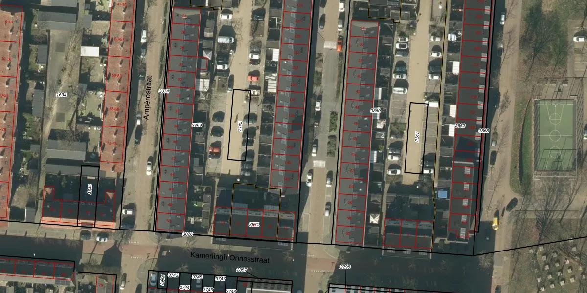 Het perceel waarop Voltastraat 143 staat heeft een oppervlakte van 3997 m². Dit is een zeer groot perceel. De perceeloppervlakte wordt geregistreerd door het Kadaster. Gedetailleerde informatie over de maten van dit perceel kunt u vinden in het rapport Kadastrale kaart met maatvoering van Voltastraat 143.