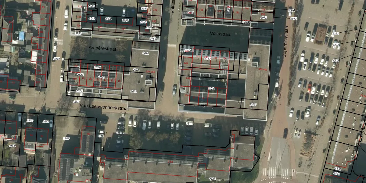 Het perceel waarop Voltastraat 150 staat heeft een oppervlakte van 1026 m². Dit is een zeer groot perceel. De perceeloppervlakte wordt geregistreerd door het Kadaster. Gedetailleerde informatie over de maten van dit perceel kunt u vinden in het rapport Kadastrale kaart met maatvoering van Voltastraat 150.