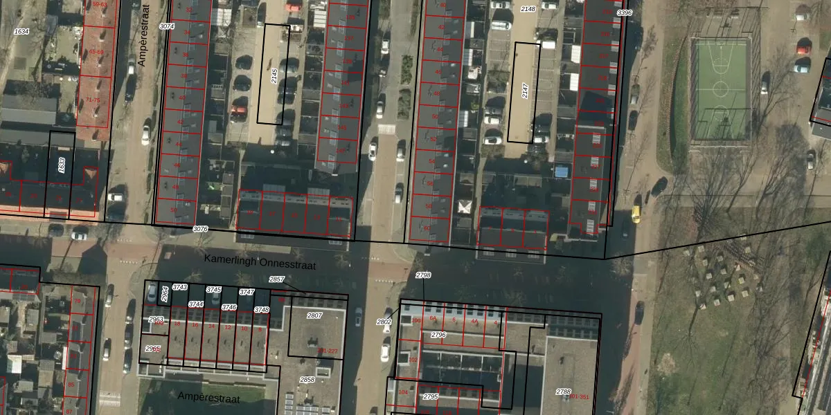 Het perceel waarop Voltastraat 58 staat heeft een oppervlakte van 4486 m². Dit is een zeer groot perceel. De perceeloppervlakte wordt geregistreerd door het Kadaster. Gedetailleerde informatie over de maten van dit perceel kunt u vinden in het rapport Kadastrale kaart met maatvoering van Voltastraat 58.
