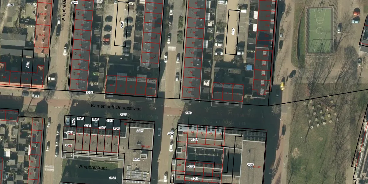Het perceel waarop Voltastraat 60 staat heeft een oppervlakte van 4486 m². Dit is een zeer groot perceel. De perceeloppervlakte wordt geregistreerd door het Kadaster. Gedetailleerde informatie over de maten van dit perceel kunt u vinden in het rapport Kadastrale kaart met maatvoering van Voltastraat 60.