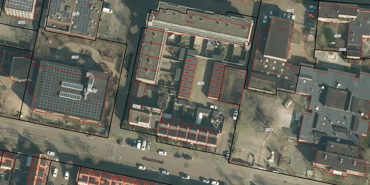 Het perceel waarop Waalstraat 48-B staat heeft een oppervlakte van 4095 m². Dit is een zeer groot perceel. De perceeloppervlakte wordt geregistreerd door het Kadaster. Gedetailleerde informatie over de maten van dit perceel kunt u vinden in het rapport Kadastrale kaart met maatvoering van Waalstraat 48-B.