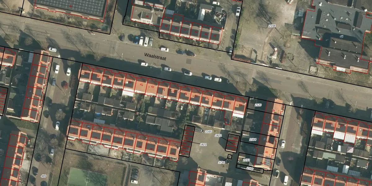 Het perceel waarop Waalstraat 49 staat heeft een oppervlakte van 9373 m². Dit is een zeer groot perceel. De perceeloppervlakte wordt geregistreerd door het Kadaster. Gedetailleerde informatie over de maten van dit perceel kunt u vinden in het rapport Kadastrale kaart met maatvoering van Waalstraat 49.