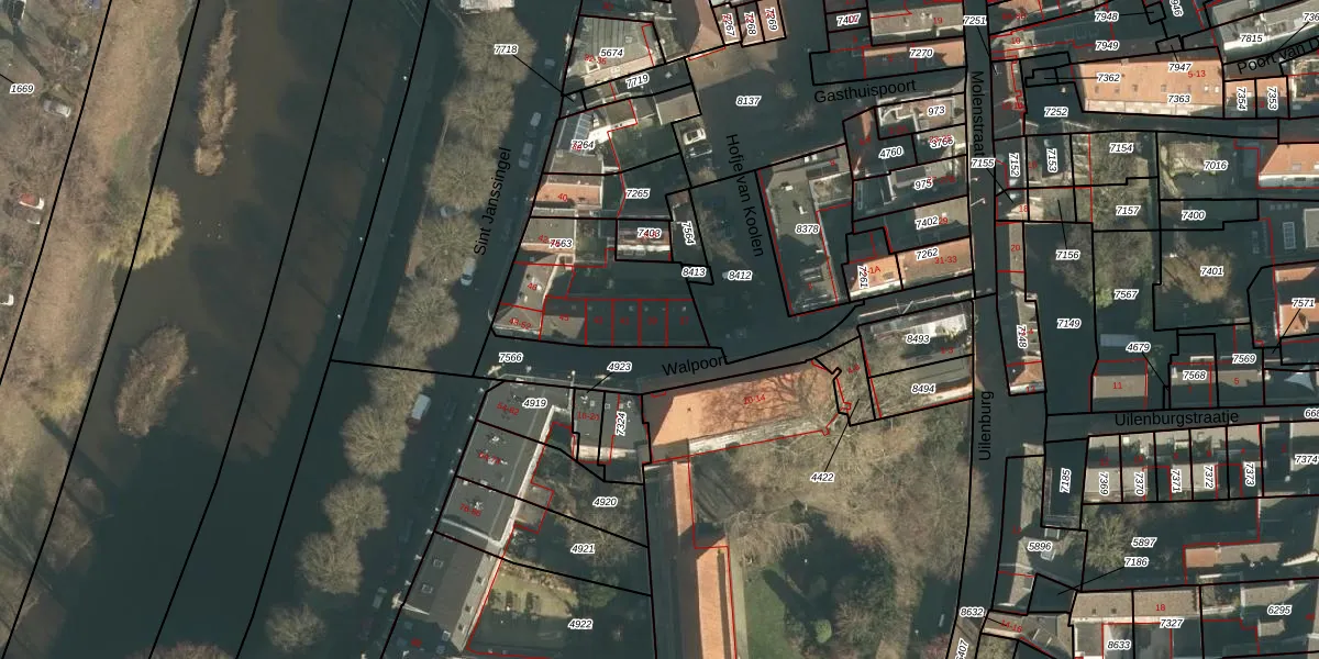 Het perceel waarop Walpoort 39 staat heeft een oppervlakte van 465 m². Dit is een groot perceel. De perceeloppervlakte wordt geregistreerd door het Kadaster. Gedetailleerde informatie over de maten van dit perceel kunt u vinden in het rapport Kadastrale kaart met maatvoering van Walpoort 39.