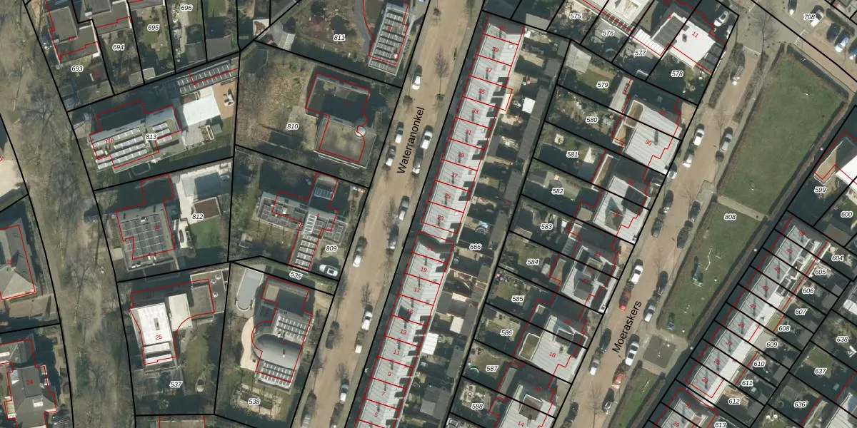 Het perceel waarop Waterranonkel 23 staat heeft een oppervlakte van 2437 m². Dit is een zeer groot perceel. De perceeloppervlakte wordt geregistreerd door het Kadaster. Gedetailleerde informatie over de maten van dit perceel kunt u vinden in het rapport Kadastrale kaart met maatvoering van Waterranonkel 23.
