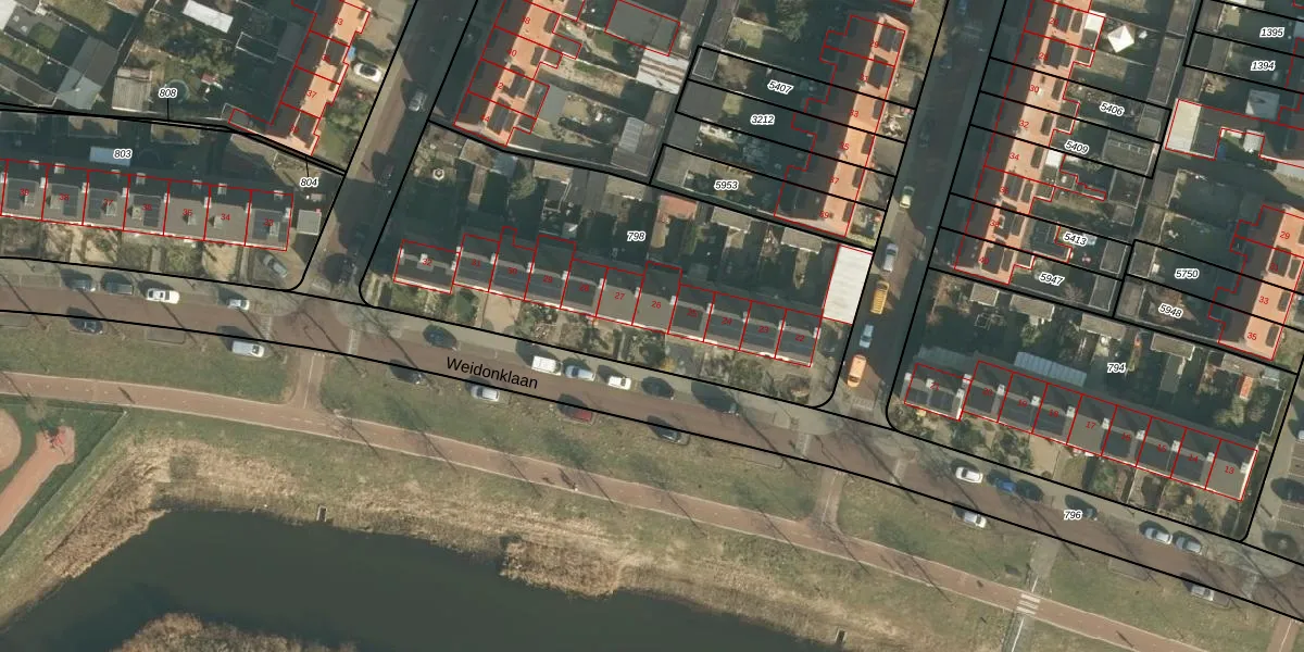 Het perceel waarop Weidonklaan 26 staat heeft een oppervlakte van 1988 m². Dit is een zeer groot perceel. De perceeloppervlakte wordt geregistreerd door het Kadaster. Gedetailleerde informatie over de maten van dit perceel kunt u vinden in het rapport Kadastrale kaart met maatvoering van Weidonklaan 26.