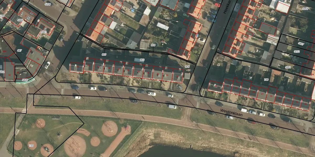 Weidonklaan 35 is gelegen op kadastraal perceel HTG00K803. Deze kadastrale aanduiding is uniek en wordt gebruikt door het Kadaster om eigendomsrechten en andere zakelijke rechten vast te leggen. Het perceel maakt onderdeel uit van de kadastrale gemeente 's-Hertogenbosch.