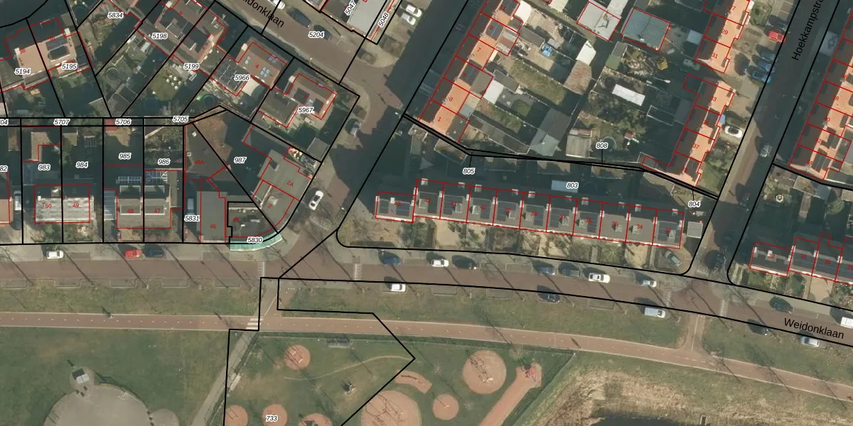 Weidonklaan 42 is gelegen op kadastraal perceel HTG00K803. Deze kadastrale aanduiding is uniek en wordt gebruikt door het Kadaster om eigendomsrechten en andere zakelijke rechten vast te leggen. Het perceel maakt onderdeel uit van de kadastrale gemeente 's-Hertogenbosch.