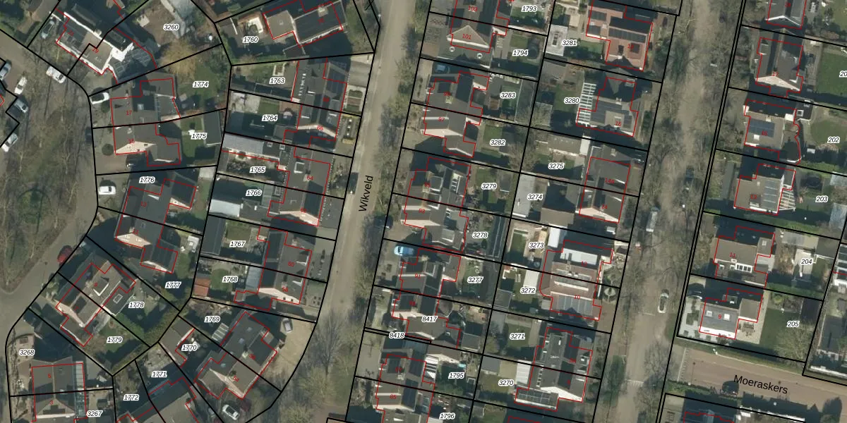 Het perceel waarop Wikveld 93 staat heeft een oppervlakte van 314 m². Dit is een groot perceel. De perceeloppervlakte wordt geregistreerd door het Kadaster. Gedetailleerde informatie over de maten van dit perceel kunt u vinden in het rapport Kadastrale kaart met maatvoering van Wikveld 93.