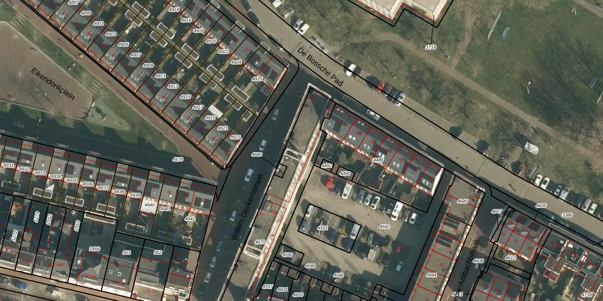 Het perceel waarop Willem Deckersstraat 15 staat heeft een oppervlakte van 845 m². Dit is een groot perceel. De perceeloppervlakte wordt geregistreerd door het Kadaster. Gedetailleerde informatie over de maten van dit perceel kunt u vinden in het rapport Kadastrale kaart met maatvoering van Willem Deckersstraat 15.