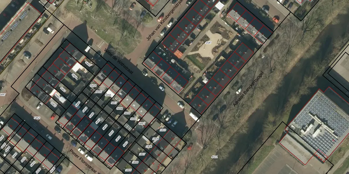 Het perceel waarop Witte de Withstraat 1 staat heeft een oppervlakte van 2876 m². Dit is een zeer groot perceel. De perceeloppervlakte wordt geregistreerd door het Kadaster. Gedetailleerde informatie over de maten van dit perceel kunt u vinden in het rapport Kadastrale kaart met maatvoering van Witte de Withstraat 1.
