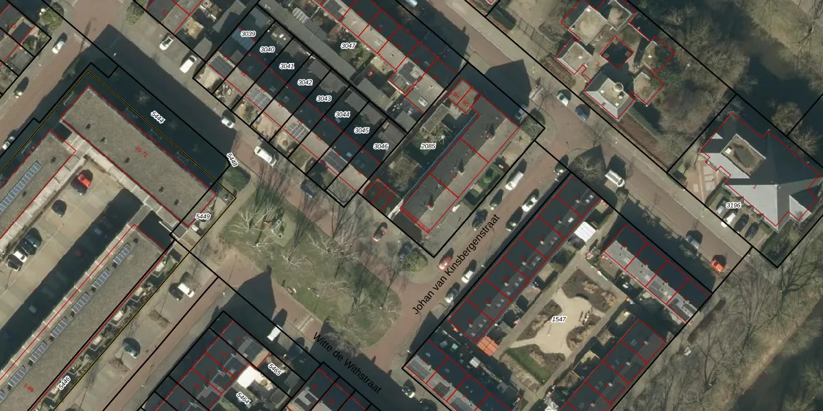 Het perceel waarop Witte de Withstraat 7-A staat heeft een oppervlakte van 1020 m². Dit is een zeer groot perceel. De perceeloppervlakte wordt geregistreerd door het Kadaster. Gedetailleerde informatie over de maten van dit perceel kunt u vinden in het rapport Kadastrale kaart met maatvoering van Witte de Withstraat 7-A.