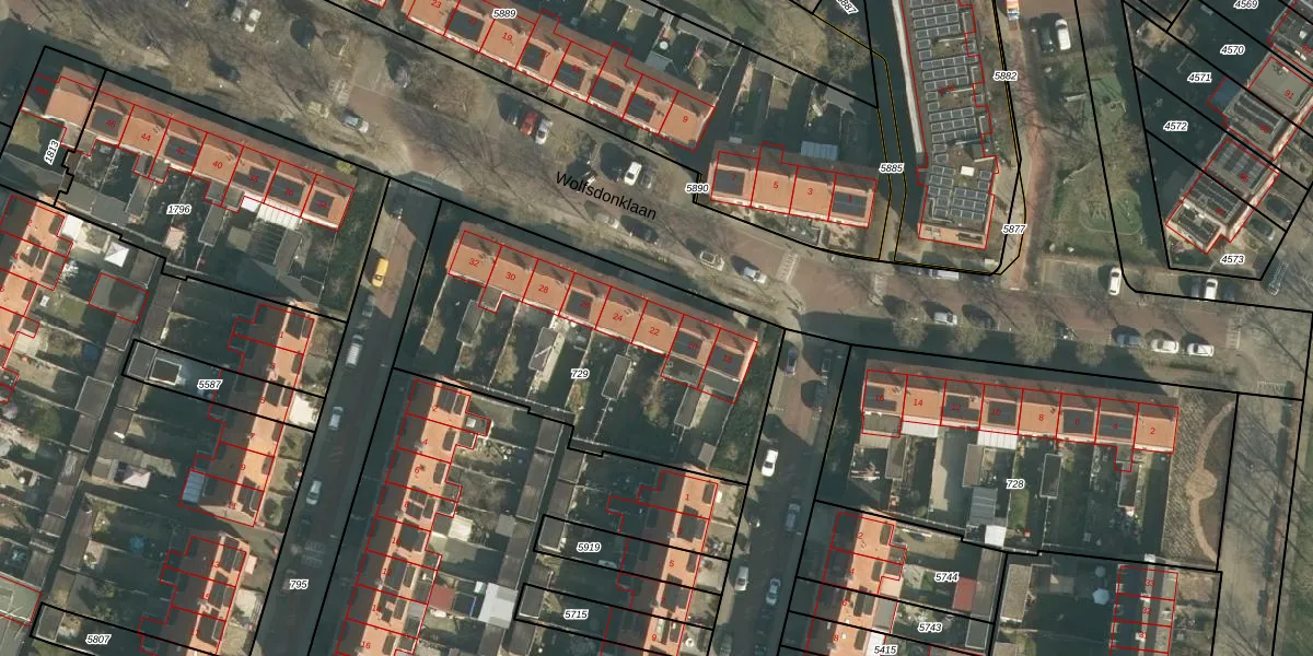 Wolfsdonklaan 22 is gelegen op kadastraal perceel HTG00K729. Deze kadastrale aanduiding is uniek en wordt gebruikt door het Kadaster om eigendomsrechten en andere zakelijke rechten vast te leggen. Het perceel maakt onderdeel uit van de kadastrale gemeente 's-Hertogenbosch.