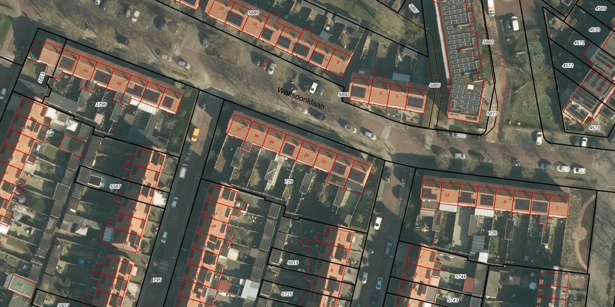 Wolfsdonklaan 24 is gelegen op kadastraal perceel HTG00K729. Deze kadastrale aanduiding is uniek en wordt gebruikt door het Kadaster om eigendomsrechten en andere zakelijke rechten vast te leggen. Het perceel maakt onderdeel uit van de kadastrale gemeente 's-Hertogenbosch.