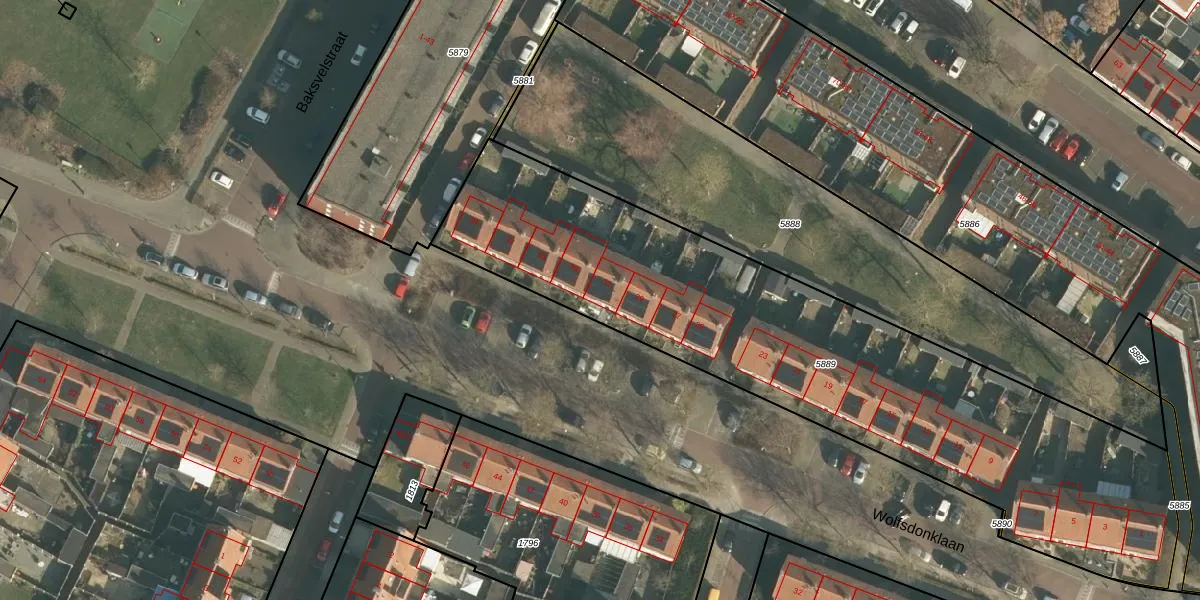 Het perceel waarop Wolfsdonklaan 31 staat heeft een oppervlakte van 2738 m². Dit is een zeer groot perceel. De perceeloppervlakte wordt geregistreerd door het Kadaster. Gedetailleerde informatie over de maten van dit perceel kunt u vinden in het rapport Kadastrale kaart met maatvoering van Wolfsdonklaan 31.