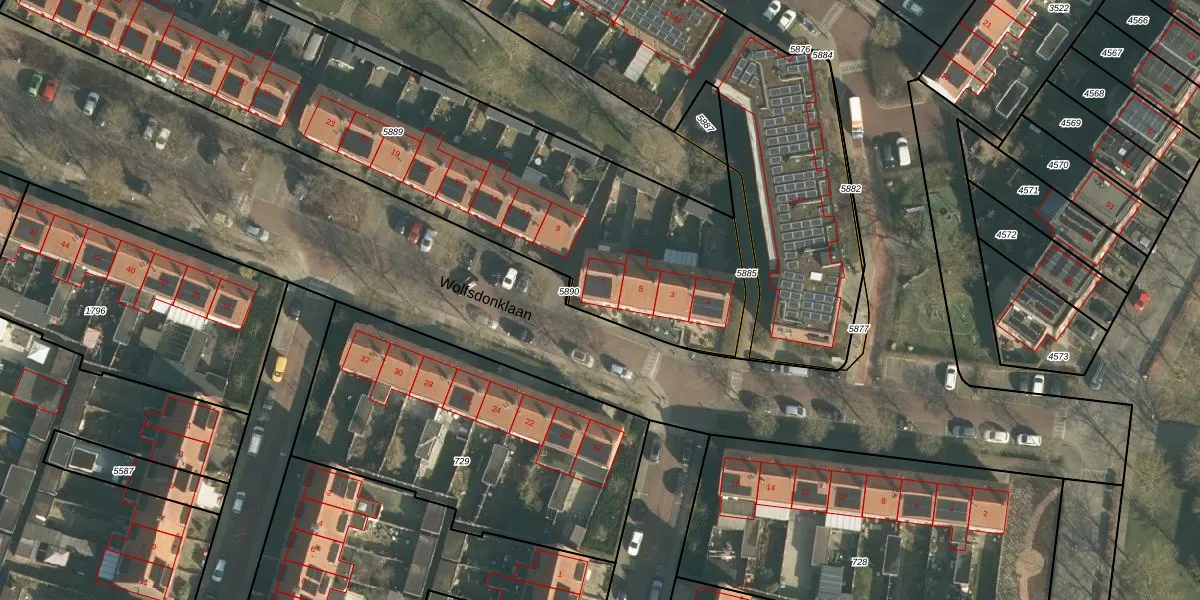Wolfsdonklaan 7 is gelegen op kadastraal perceel HTG00K5889. Deze kadastrale aanduiding is uniek en wordt gebruikt door het Kadaster om eigendomsrechten en andere zakelijke rechten vast te leggen. Het perceel maakt onderdeel uit van de kadastrale gemeente 's-Hertogenbosch.
