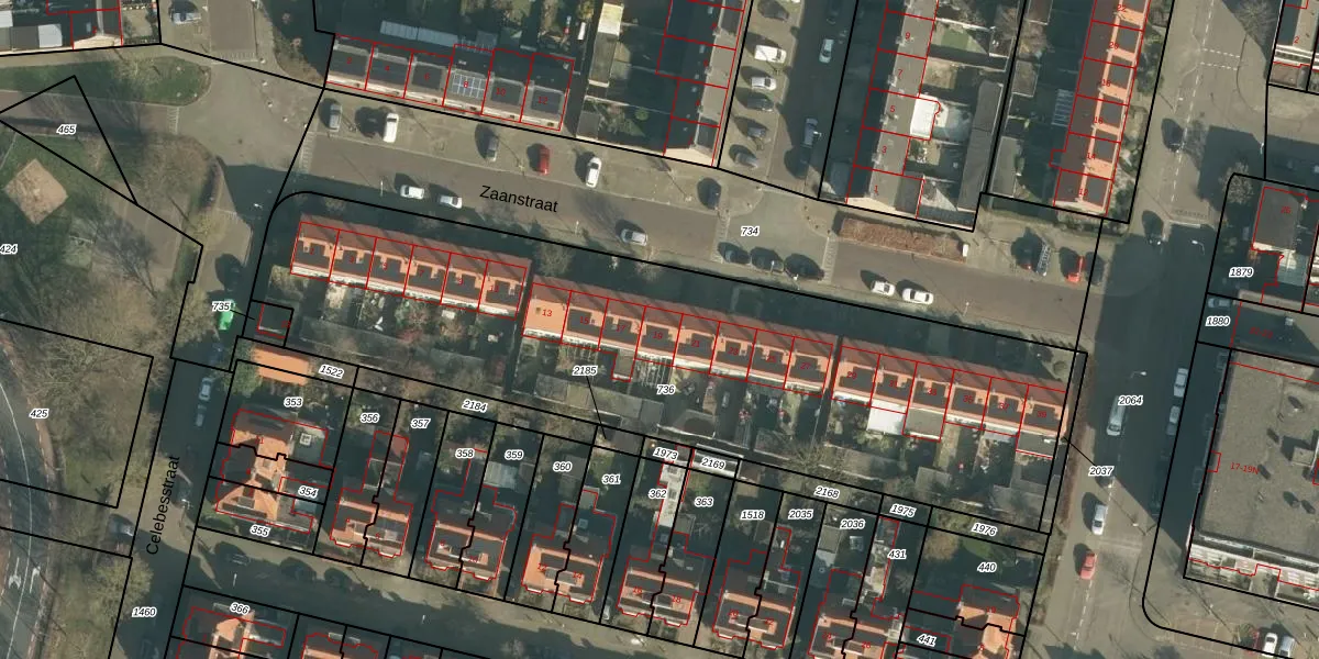 Het perceel waarop Zaanstraat 19 staat heeft een oppervlakte van 3165 m². Dit is een zeer groot perceel. De perceeloppervlakte wordt geregistreerd door het Kadaster. Gedetailleerde informatie over de maten van dit perceel kunt u vinden in het rapport Kadastrale kaart met maatvoering van Zaanstraat 19.
