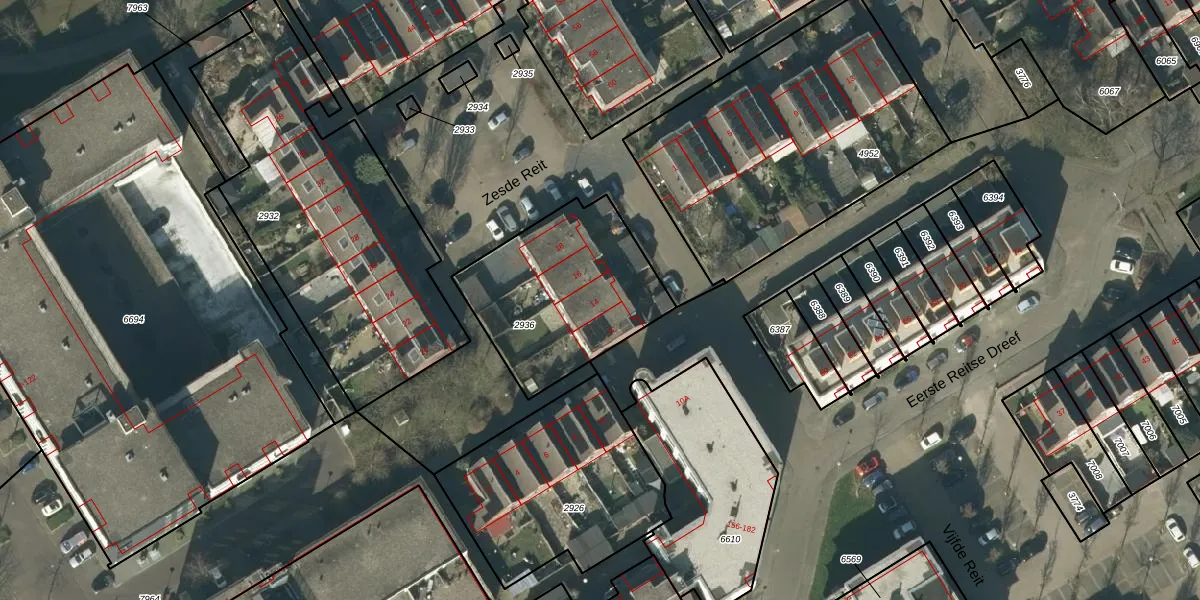Het perceel waarop Zesde Reit 14 staat heeft een oppervlakte van 694 m². Dit is een groot perceel. De perceeloppervlakte wordt geregistreerd door het Kadaster. Gedetailleerde informatie over de maten van dit perceel kunt u vinden in het rapport Kadastrale kaart met maatvoering van Zesde Reit 14.
