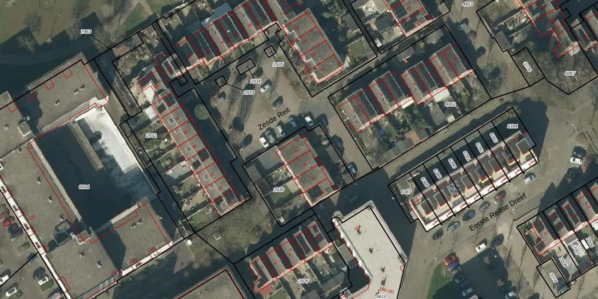 Het perceel waarop Zesde Reit 18 staat heeft een oppervlakte van 694 m². Dit is een groot perceel. De perceeloppervlakte wordt geregistreerd door het Kadaster. Gedetailleerde informatie over de maten van dit perceel kunt u vinden in het rapport Kadastrale kaart met maatvoering van Zesde Reit 18.